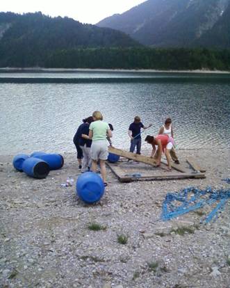 Zu Land und zu Wasser gilt es verschiedene Aufgaben zu erfüllen. So heißt es an der Kanustation Boote aufzupumpen, um danach eine knifflige Aufgabe auf dem Wasser zu erledigen. Alle Raftboote sind miteinander verbunden, nun heißt es einen Ball gemeinsam an Land zu bringen. Wer hier „aus dem Ruder fällt“ wird es nicht schaffen. Eine weitere große Herausforderung besteht beim Bau eines Floßes. Dieses muss zumindest so wassertauglich sein, dass Sie damit auf dem Wasser Ihre Aufgaben erfüllen können. Aber keine Sorge: erfahrene Floßbauer stehen Ihnen zur Seite. Zum Abschluss erwartet Sie noch eine digitale Schatzsuche: Mit Hilfe von GPS-Geräten müssen die Teilnehmer einen Schatz bestehend aus Energydrinks aufstöbern.